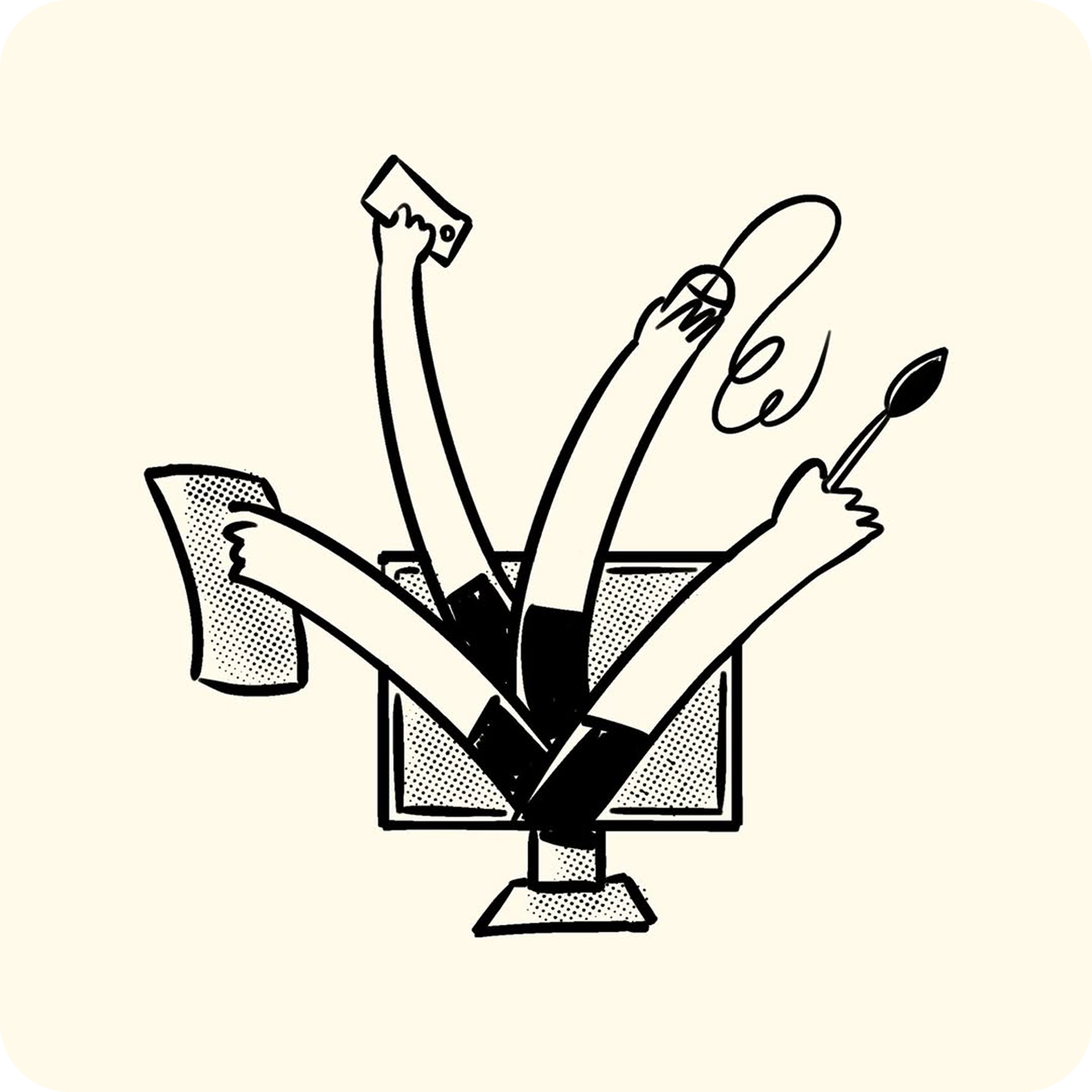 Ideia de ícones que falam sobre design, escrita e skate